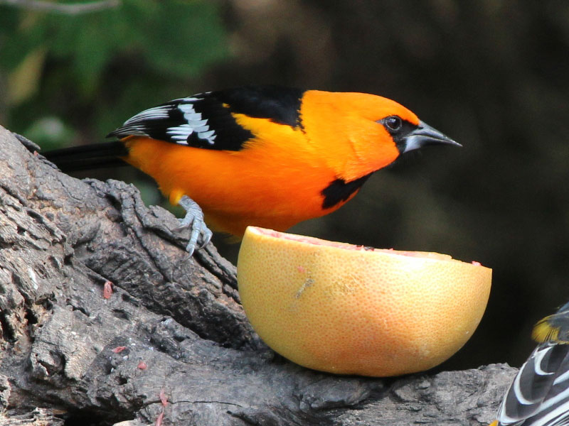 It was only in 1939 that this Altamira Oriole was first found north of the Rio Grande River. Now it happily visits residents on the Texas side of the river, especially where a juicy orange half waits in a backyard feeder. Northerly breeding orioles, like Bullock’s in the West and the Baltimore in the East, nest as far north as Canada, but winter mostly in Central America.