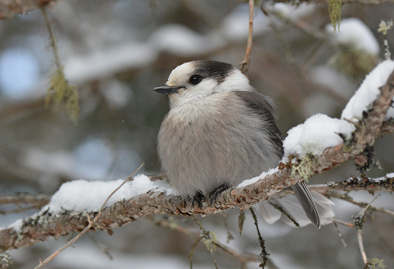 While camping in the mountains, you might see this Canada Jay (formerly known as the Gray Jay — but before that, as the Canada Jay!), boldly swooping into your camp. This handsome jay’s big, black eyes seem to miss nothing — especially food. But the one food Canada Jays don’t eat is conifer seeds. The jays hide other food in conifer needles and tuck it under the bark of trees with their sticky saliva. With terrific visual memories, the jays can find thousands of hidden tidbits months later.