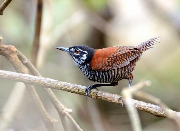 In temperate climates like North America, it’s often male songbirds that sing the most. Typically, the males migrate north before the females and establish territories for the short breeding season, using their songs as a way to claim a spot. But many female birds do sing, even in colder climates (like this Bay Wren). And in warm tropic zones, female birds often have a big role in defending a territory, and many of them sing just as loudly and artfully as the males.