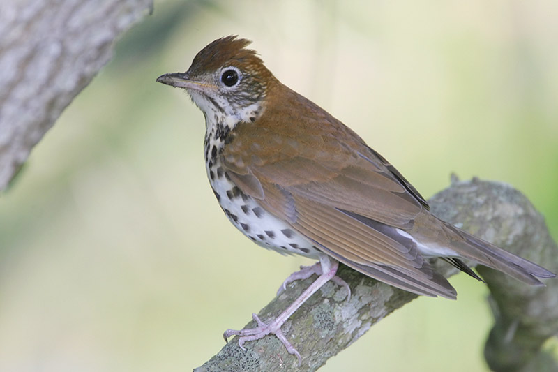 In June 1853, Thoreau wrote of an enchanting encounter with the Wood Thrush: “This is the only bird whose note affects me like music. It lifts and exhilarates me. It is inspiring. It changes all hours to an eternal morning.” Wood Thrushes thrive in large expanses of forest. And their numbers have declined as forests have been cut on their breeding grounds. Protected areas like Adirondack Park, Great Smoky Mountains National Park, and Ozark National Forest give them a chance to thrive.