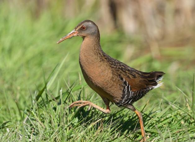 The Virginia Rail is a secretive bird, a relative of coots and cranes. And it’s a bird you’ll more often hear than spy. The rail takes its name from its narrow body — “as skinny as a rail” — an adaptation to its favorite marshy habitats. A Virginia Rail walks hidden, squeezing through dense reeds and grasses. You can count yourself lucky if you have actually seen a Virginia Rail.