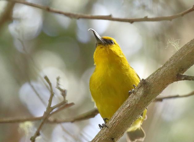 The ‘Akiapōlā’au is a bright yellow bird with a black eye mask, found only in the upper elevations on the Big Island of Hawai’i. But its most distinct feature is its totally unique, uneven bill. The top of the bill is long, skinny, and curved like a sickle. Once abundant, habitat loss and disease from mosquitoes has taken a toll on the ‘Akiapōlā’au population. In a race against extinction, people are working to restore habitat and control deadly invasive species to save Hawai’i’s rarest birds.